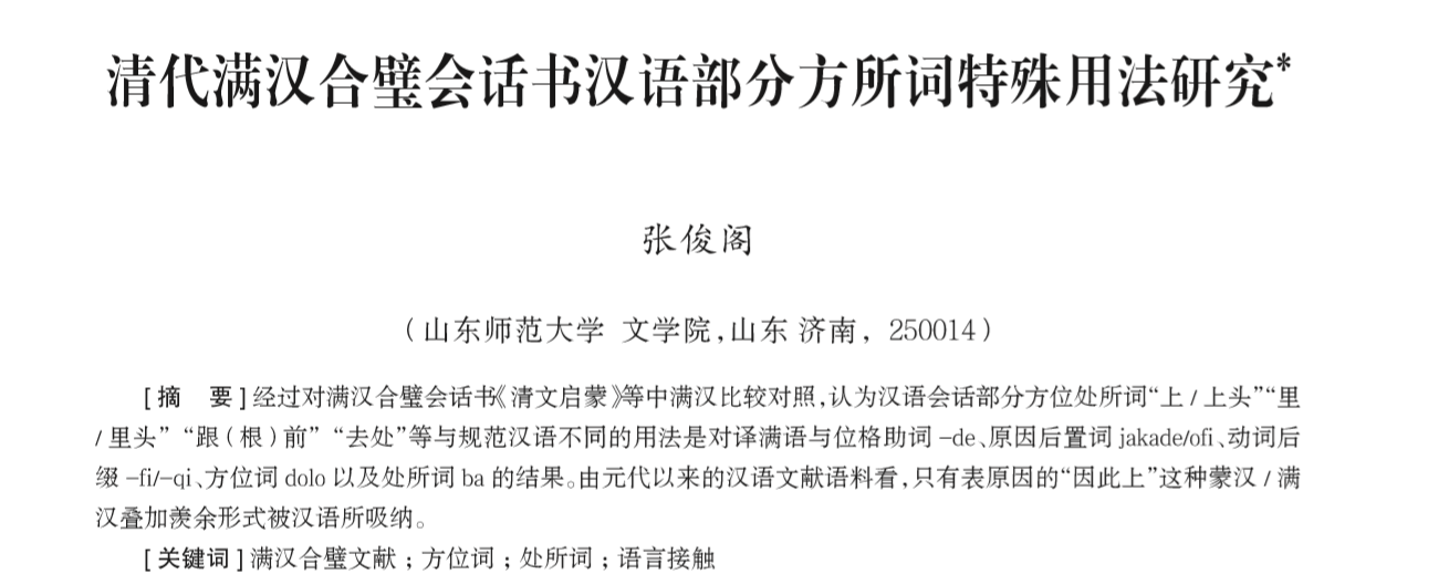 近日,360环球在线注册张俊阁副教授论文《清代满汉合璧会话书汉语部分方所词特殊用法研究》发表于《古汉语研究》2020年第3期。