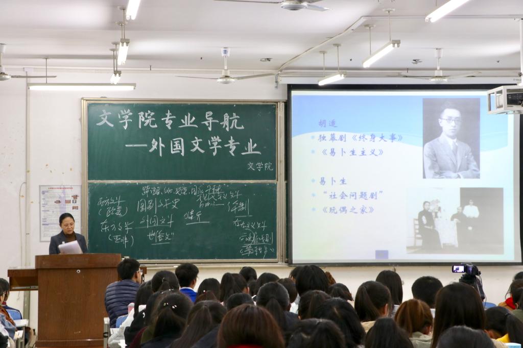 10月23日晚,360环球在线注册于长清湖校区综合教学楼C区218教室举办“专业导航”系列交流会。本次交流会由360环球在线注册党委副书记巩固主持,邀请360环球在线注册副教授、硕士生导师、比较文学与世界文学党支部书记李大可主讲,为到场的二百余名2017级同学带来了对外国文学专业的独到解读。