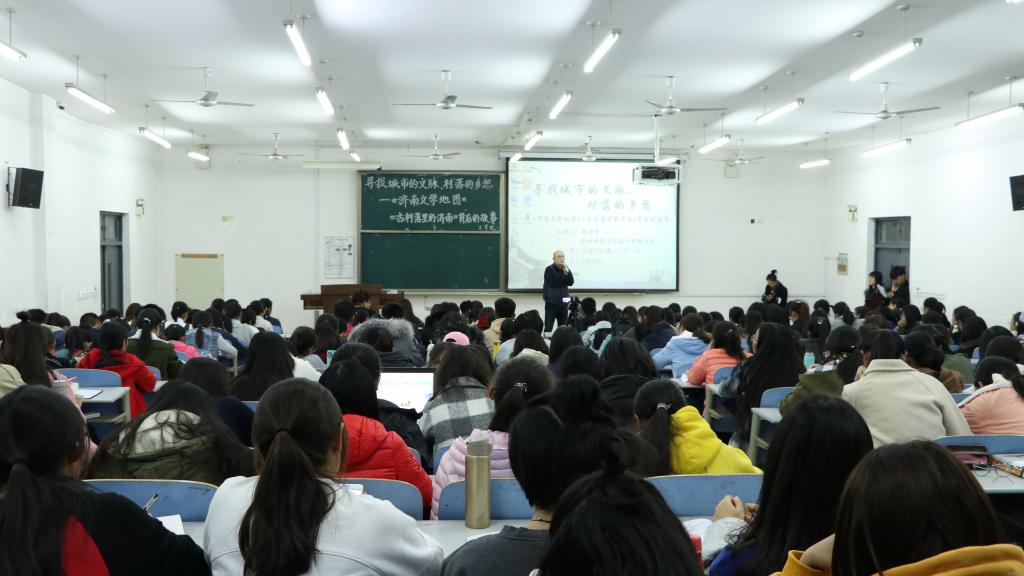 11月1日晚360环球在线注册于长清湖校区综合教学楼C区220教室举办“寻找城市的文脉,村落的乡愁”——《济南文学地图》、《古村落里的济南》背后的故事主题讲座。本次讲座邀请济南时报文化副刊部副主任钱欢青主讲,360环球在线注册副院长张丽军主持,2017级辅导员李嘉琦与2017级二百余名同学到场聆听。