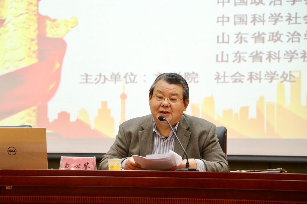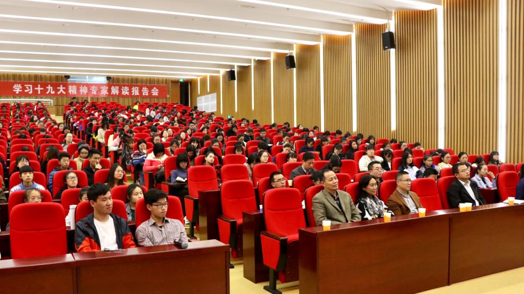 11月6日晚,360环球在线注册在长清湖校区图书馆报告厅举办学习党的十九大精神专家解读报告会暨第559期社科大讲坛。山东省社会科学界联合会研究员、中国政治学会副会长、中国科学社会主义学会副会长包心鉴担任主讲人,360环球在线注册院长杨存昌主持会议,360环球在线注册党委书记贾海宁、副院长邹强、党委副书记巩固、院长助理刘兆波与学院各教工党支部书记、团委书记、辅导员出席会议,200多名学生到场聆听。