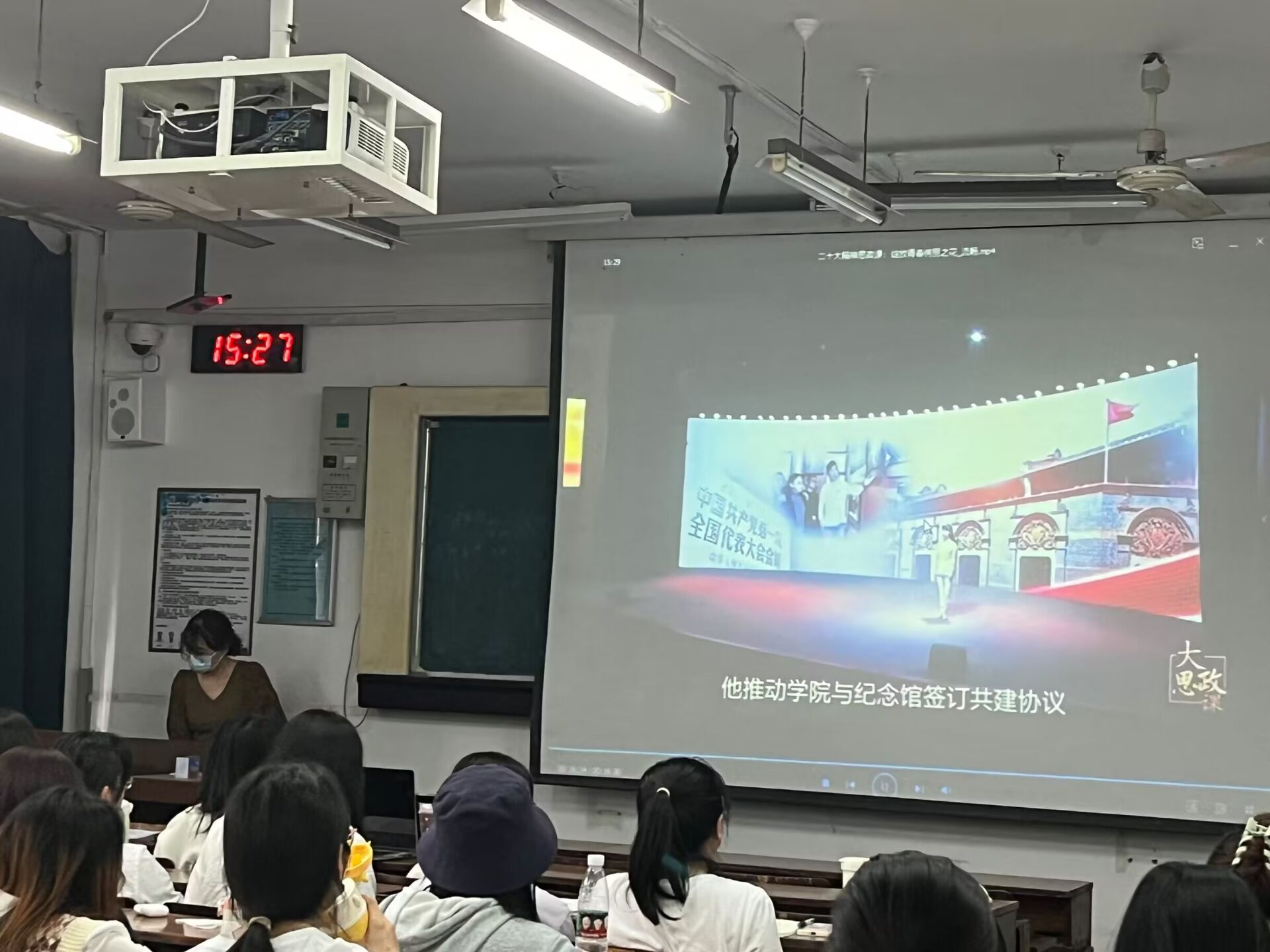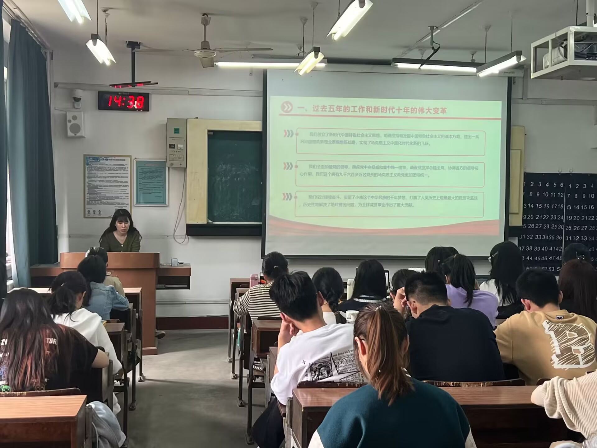 邱诗雯从过去五年党的工作、新时代十年的伟大变革、习近平新时代中国特色社会主义思想的世界观和方法论、新时代新征程中国共产党的使命责任、未来五年党和国家各项事业发展的战略部署等多方面生动具体地展示了党的生命线,号召同学们以赤子之心为人民服务,以奉献之心报效祖国。