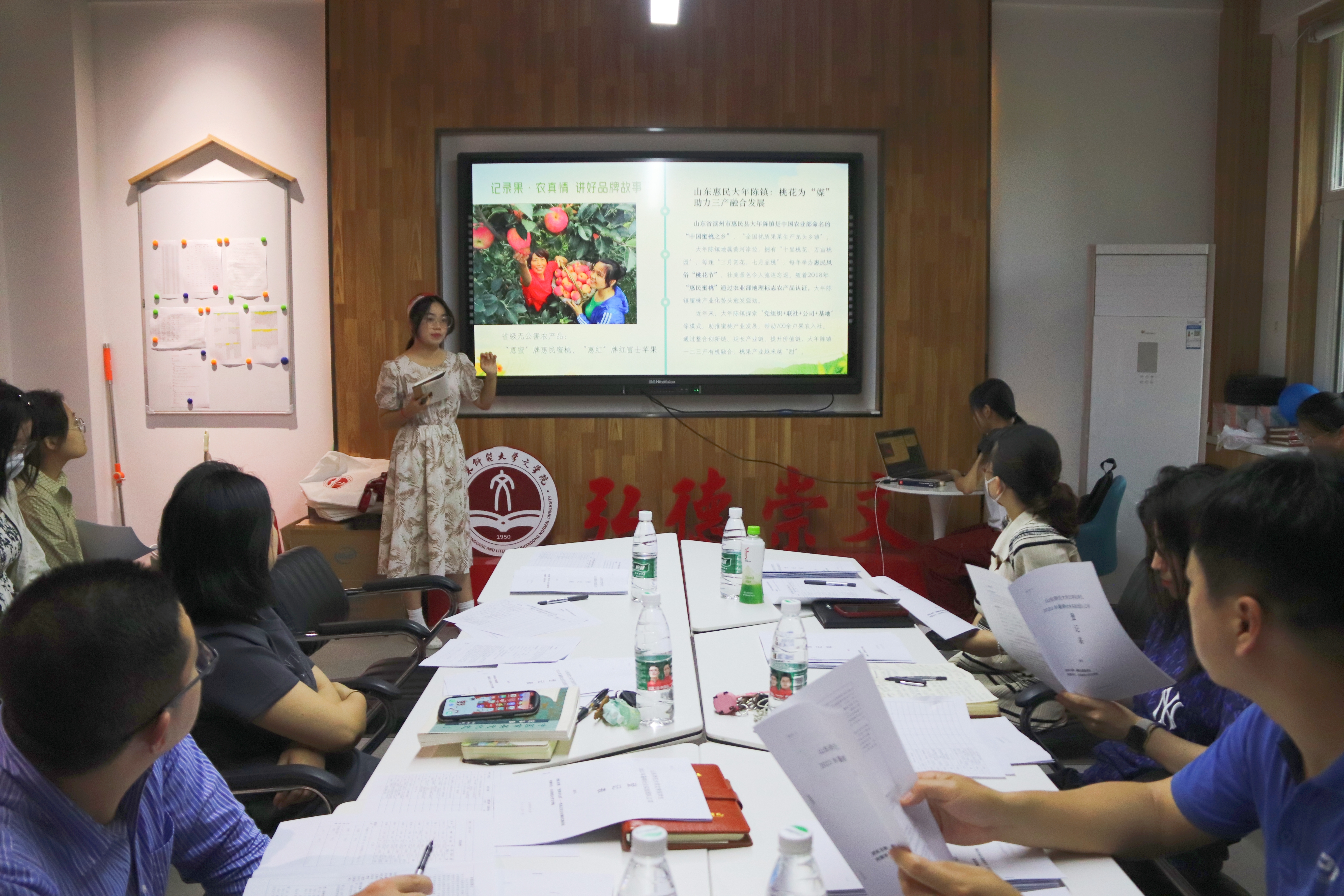 参与本次立项答辩的共有14支实践队,各团队负责人按照抽签顺序,分三组依次答辩。答辩过程中负责人借助PPT、策划书等形式系统介绍各项目的开展计划,并详细阐述了各自的团队规模架构及实践优势。此次答辩过程精彩纷呈,各实践团队以社会需求为出发点,围绕乡村振兴、党的二十大精神、志愿服务等问题展开实践调研与宣讲,充分发挥专业优势,依托社会实践基地和自主联系单位等,开展多层次、全方位的社会实践。“友好童行”团队以构建“儿童友好型社区”的社会问题为切入点,试通过文体演出、党史宣讲等多种方式践行“将美育送入社区,以泉声漫入春苗”的项目宗旨;“桃自成蹊”——山东桃园乡社会实践志愿服务团队结合专业特色,聚焦桃园品牌故事,深入探索FD冻干新型加工技术的融入; “青风传习”二十大主题青年实践团则以媒体宣传为重心,深入学习贯彻党的二十大精神,将理论学习与社会实践相贯通,以实际行动赓续红色血脉。评委老师在答辩过程中针对各团队项目规划进行细致点评,鼓励同学们进一步挖掘社会问题的可探究点,增强选题的聚焦性和深入性,以期在研究的高度和深度上有所突破。