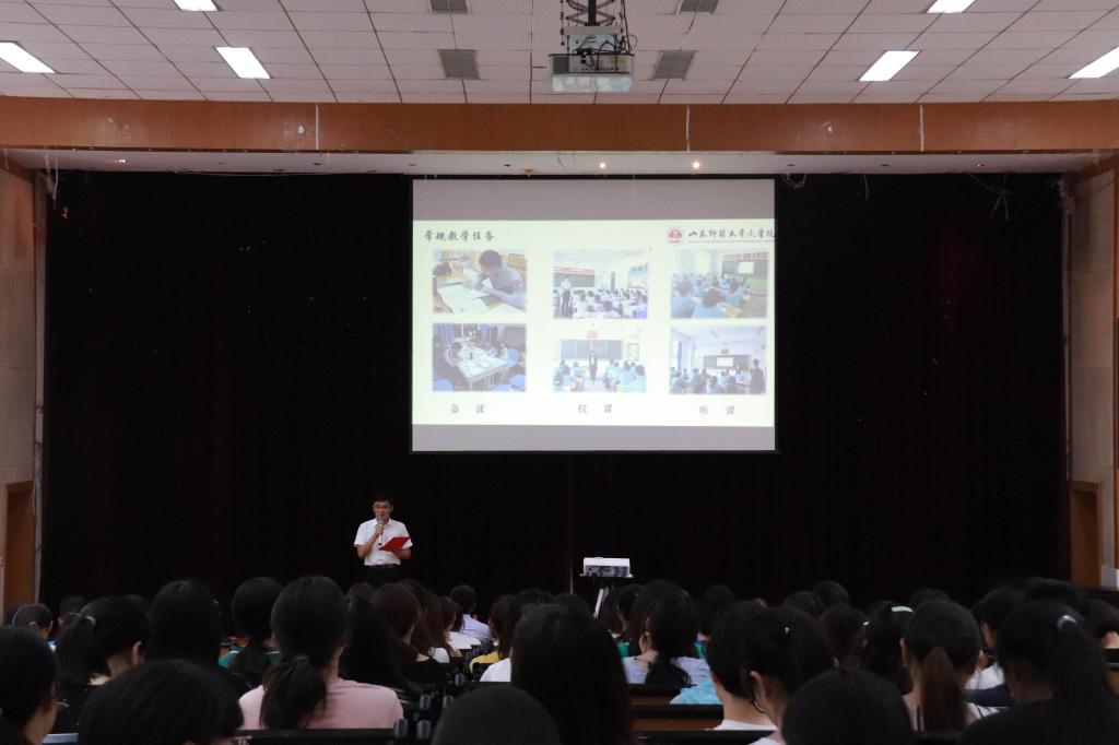 在齐鲁实验学校实习的徐布维围绕“转变,从心开始”的主题分享了实习感悟。她强调角色调整的重要性,从获取到教授,从学生到教师,从参与者到设计者,都是同学们在实习中需要经历的转变,她还结合自己的实际案例分享教学经验。在青岛十七中实习的姜奎良分享了关于经典阅读的实践心得;在商河支教的魏延杰分享了照顾“留守儿童”的经历和感受;在临朐支教的李美杰则强调“用一个灵魂去唤醒另一个灵魂”,帮助孩子们树立正确的价值观;最后,援疆实习支教团队长兰润民展示了在新疆的教学、调研和特色党建活动成果。他们克服种种困难,圆满各项任务,受到了当地政府与师生的一致好评。