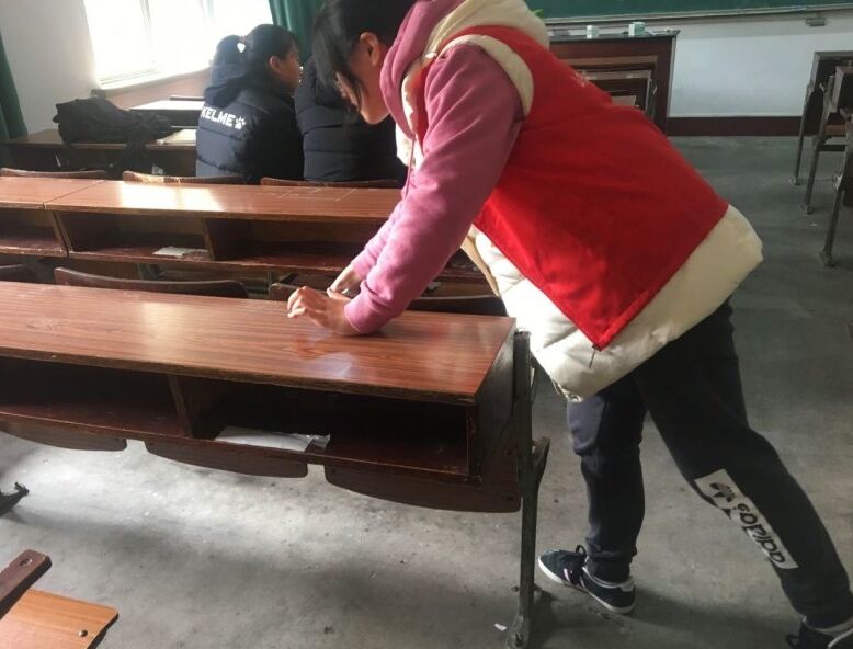 在“室内无痕”教室卫生清扫环节,院外联部带领志愿者身体力行,积极行动。利用3月5日中午休息时间,志愿者对教学三楼内教室桌洞进行统一清理、打扫,力争发扬雷锋“星星之火、可以燎原”的精神,一方面为清洁楼内卫生的工作人员减轻了工作负担,另一方面也为同学们营造了一个清新、干净、整洁的学习环境,让同学们体会到志愿服务暖心行动“无处不在,无微不至”的温暖。
