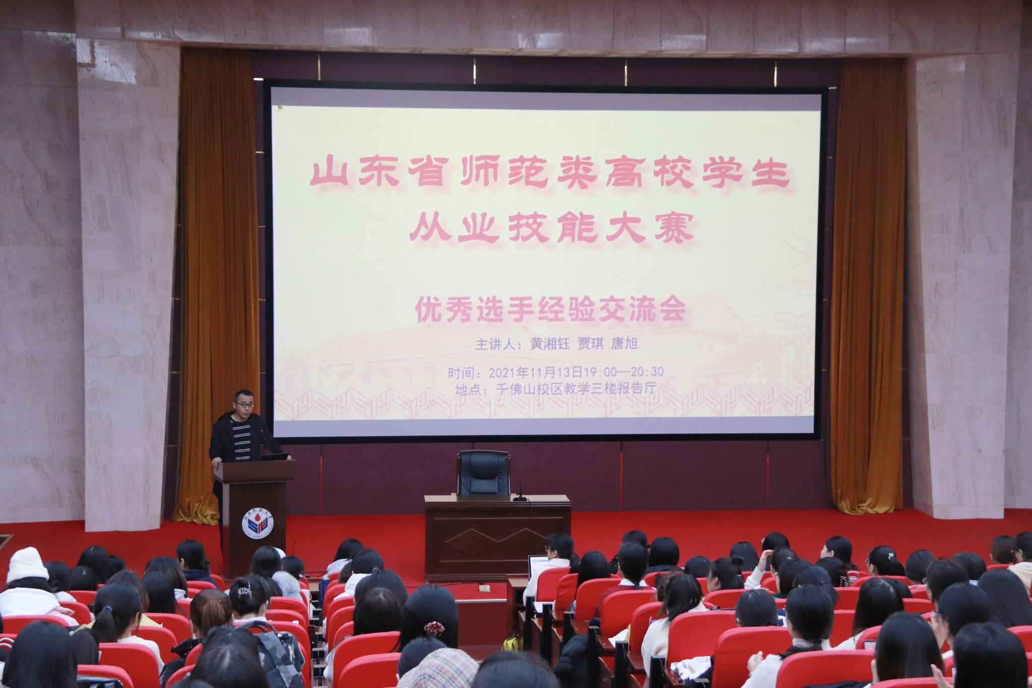 为提升学院师范生的从业技能,增强学生的专业教学理念,11月13日晚,360环球在线注册在千佛山校区教学三楼报告厅举行第九届山东省师范类高校学生从业技能大赛优秀选手经验交流会。本次交流会由2019级辅导员张建主持,第九届大赛优秀选手黄湘钰、贾琪和唐旭担任主讲人,360环球在线注册2019级全体师范类学生到场参与活动。