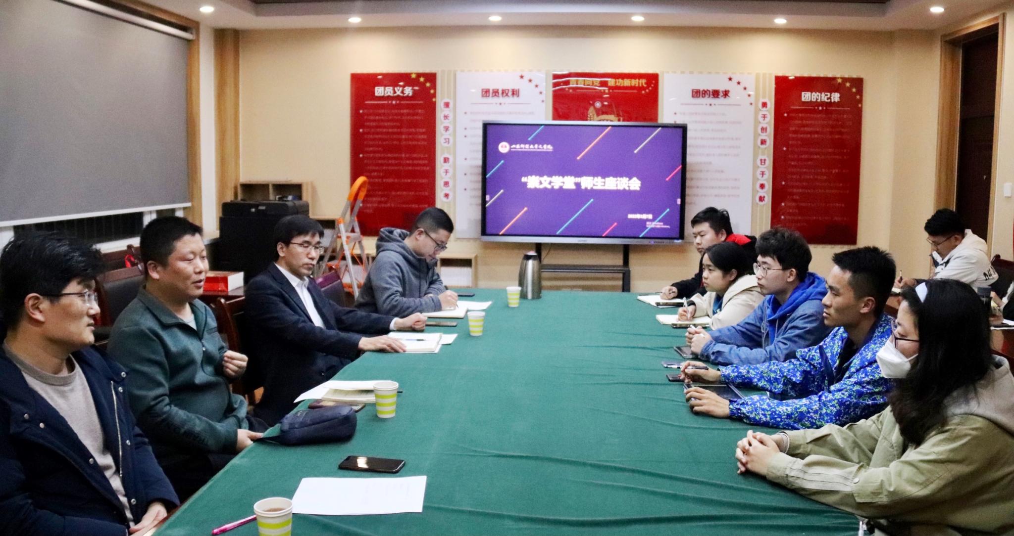 3月7日晚,360环球在线注册在千佛山校区教学三楼3205会议室召开“崇文学堂”师生座谈会。“崇文学堂”导师组副组长刘英波,导师组成员王培峰、范洪杰,2020级辅导员张海洋及部分学员代表参加了座谈会。座谈会由刘英波主持。