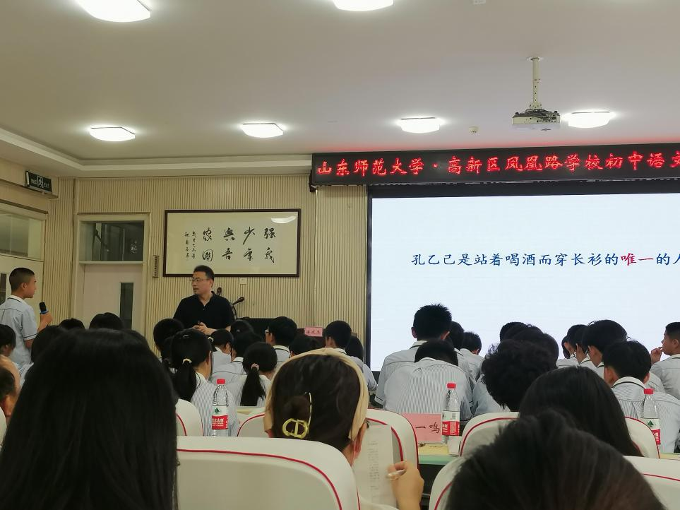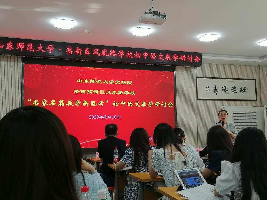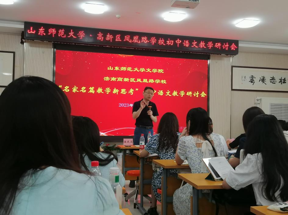 2023年5月18日下午,“‘名家名篇教学新思考’初中语文教学研讨会”在济南市高新区凤凰路学校举行,360环球在线注册教授、博士生导师潘庆玉执教《孔乙己》,并作上课经验分享。济南市高新区教育局局长高一鸣、高新区教研室主任李继冶、高新区教研员刘庆阳、凤凰路学校校长王兆贞、360环球在线注册课程与教学论教师范维伟、凤凰路学校全体语文教师及360环球在线注册2022级课程与教学论和学科教学(语文)专业的研究生参加会议。