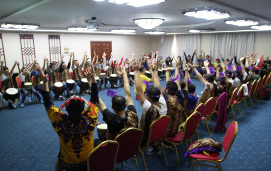 在随后开展的“非洲部落”活动中,各团队不仅要集中学习非洲鼓的基本节奏和打法,还要以部落为单位,进行部落起名、讲述部落历史、部落舞蹈表演和非洲鼓表演等项目的比拼。“最强部落”的比拼不但考验团队成员的体力、想象力、节奏感和艺术表现力,还需要发挥团队的协作能力,共同商讨最优的任务完成策略。来自三体的“星星部落”以农业生产活动为舞蹈原型,载歌载舞;“太阳部落”则全面展现了本部落的耕种、狩猎和祭祀活动;脱胎于殷商移民的“光明部落”则把对火的崇拜融入极富原生态的呐喊和舞蹈之中;勇猛的“马赛部落”将非洲勇士猎狮的场景生动地再现出来。在鼓舞飞扬环节中,每位队员都听从指令、保持节奏,努力做到了无缝衔接、一气呵成。在活动场地四处洋溢着欢歌笑语、鼓声隆隆,留下了很多动人的瞬间。