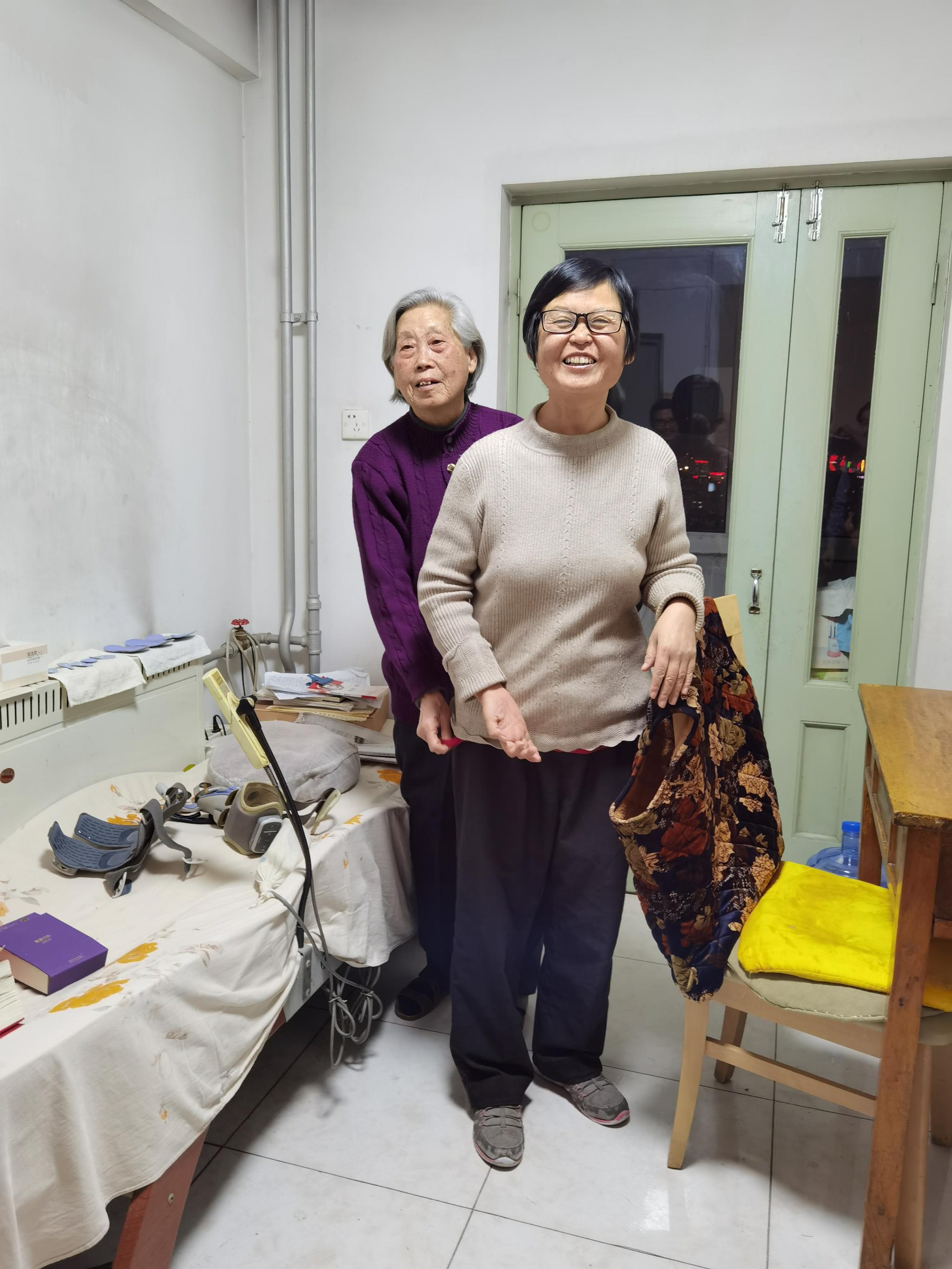 吕家乡教授妻子王占鸾(左)、女儿吕红线(右)