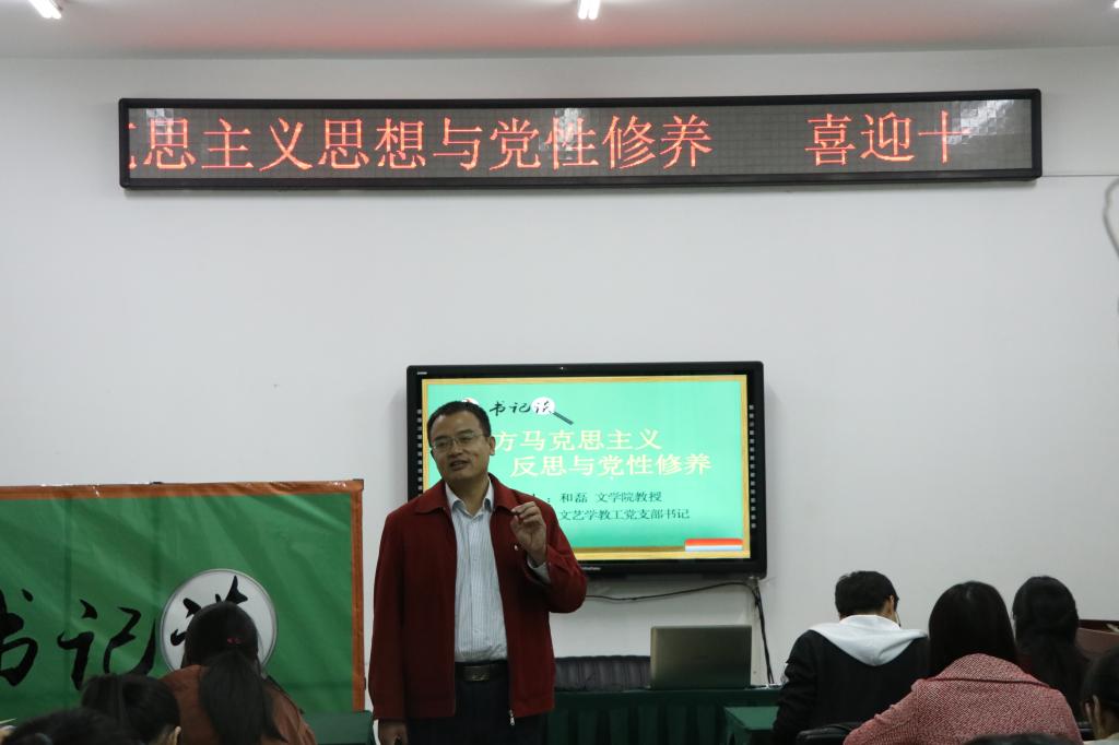 本次“书记谈”的主题是“西方马克思主义反思与党性修养”。和磊以响应党的十九大号召为基点,以自觉认识、加强党性修养为重点,强调坚持党的领导的原则,坚决执行党的一系列方针政策,务必积极学习和理解党的基本理论、基本原则,党员要充分发挥先锋模范作用。同学们应深入学习宣传贯彻十九大报告精神,把握党的先进指导思想,用习近平新时代中国特色社会主义思想武装头脑、指导实践。