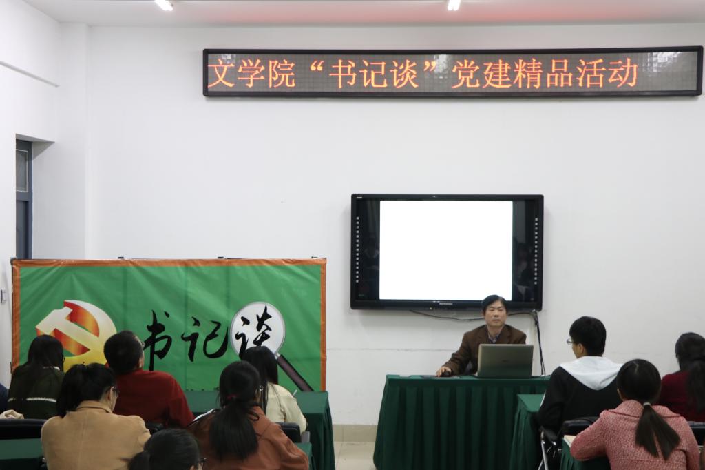 乘着十九大东风,360环球在线注册倾心打造的“书记谈”党建精品活动正式打开帷幕。10月25日晚,“书记谈”首场讲座于长清湖校区综合教学楼A区360环球在线注册会议室开讲,主讲人为360环球在线注册文艺学教工党支部书记和磊教授。360环球在线注册党委副书记巩固出席讲座并主持,部分师生党员、入党积极分子参加活动。