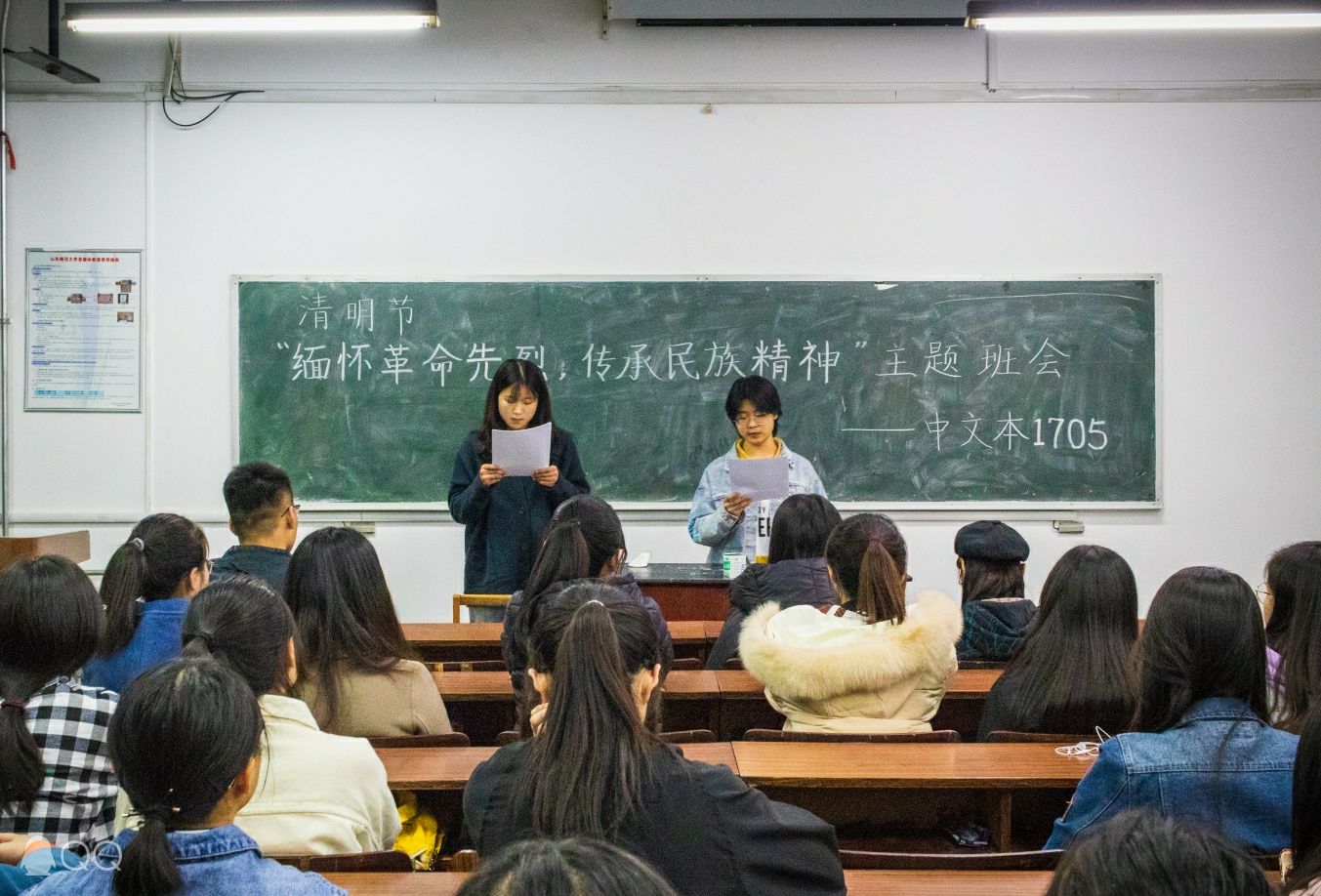 本次“缅怀革命先烈,传承民族精神”系列主题活动分为主题班会和参观扫墓两种形式。其中系列班会活动可谓同中有异、丰富多彩。各班同学分别采用红色诗歌朗诵、英烈事迹分享、红色电影赏析、“网上祭英烈”、红色歌曲演唱等多种形式召开班会,展现班级特色。班会伊始,各班主持人都在班会上向同学们阐明班会主题、讲解班会背景、深入阐释班会的重要意义。其中,中文本1705班张雨欣、周俐两位同学带来红色诗歌的朗诵。他们字字铿锵、动人心弦、气势磅礴的朗诵表达出对革命烈士的无限敬仰与赞叹,引发在场同学的热烈掌声。与此同时,中文本1701班在班会上表达了对凉山火灾中牺牲的救火英雄的缅怀,呼吁同学们登录中国文明网,参加“网上祭英烈”活动、“你身边的英烈故事”征集活动、校团委武装部和校学生会组织的“缅怀革命先烈,争做时代新人”主题升旗仪式。同学们纷纷在手机上留言、献花,他们纷纷表示:“相较于传统的祭祀活动,这种表达哀思的方式更加安全环保,值得推广。”此外,中文本1706班田润泽同学选择红色电影《小兵张嘎》进行赏析,通过分享自己对于电影诙谐又严肃的情节的独特感悟,深切缅怀为解放中国而英勇牺牲的革命先烈并表达自己的敬仰与感恩。他呼吁同学们牢记慎终追远,继承英雄遗志,增强道路自信、理论自信、制度自信、文化自信,为民族复兴贡献力量。值得一提的是,秘书本1701班在向同学们说明清明假期注意事项,强调假期安全问题的同时,为全班同学准备了清明节的传统美食青团。透着艾草清香、甜甜糯糯的青团,蕴含着家的味道,交叠着民族基因。同学们欢聚一堂、共庆传统佳节、传承传统文化。2018级同学的班会同样精彩纷呈。文师本1802班根据大学生喜爱文艺活动的特点,组织演唱红色歌曲吸引同学的关注。由王如意、朱伟同学演唱的《映山红》生动活泼地展示出党在革命斗争事业中的革命乐观主义精神和敢为人先的奋斗精神。中文本1705班班长梁英明在班会结尾时强调的内容代表了大部分人的心声。他表示:“此次班会提醒我们在新时代的大好环境下,更应该认真学习、努力奋斗,为实现个人梦与民族复兴的中国梦而不断前行。”