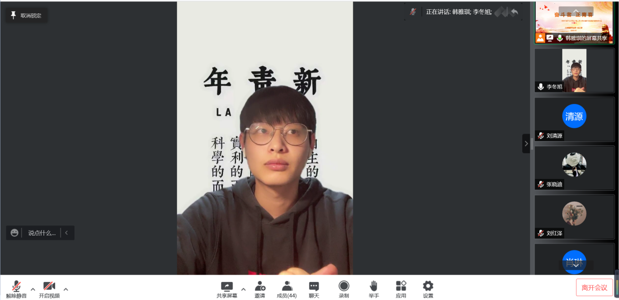 会议强调,各党员要学深悟透讲话精神,将学习落到实处,有真感想、真体会并作出真行动。随后韩雅琪围绕“奋斗者,正青春”主题,结合目前疫情形势与党员作为,浅谈“青春与青年”话题,向大家分享学习《习近平总书记在中国人民大学考察时的重要讲话》的心得体会。