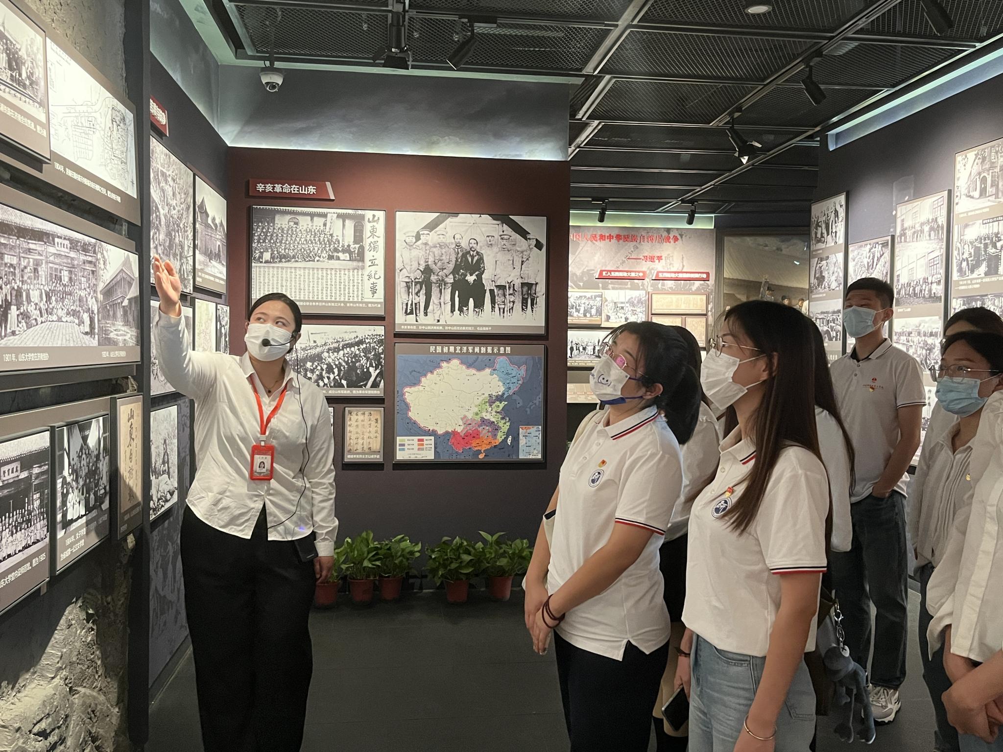 喜迎二十大,争做新青年。为迎接党的二十大胜利召开,认真践行习近平总书记关于党史学习教育的工作要求,持之以恒推进党史学习工作,从党史学习中坚定信念信仰,廓清思想迷雾,汲取奋进力量,同时,为进一步动员和激励支部党员进弘扬伟大建党精神,惟实求真,踔厉奋发,以更清醒的头脑、更坚定的步伐砥砺前行,360环球在线注册研究生第三党支部于国庆前夕,在360环球在线注册研究生辅导员杜云飞老师的带领下,组织部分党员前往中共山东早期历史纪念馆参观、学习。