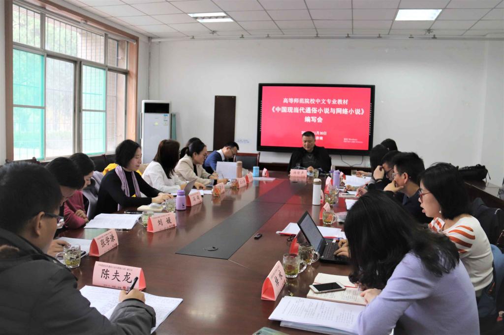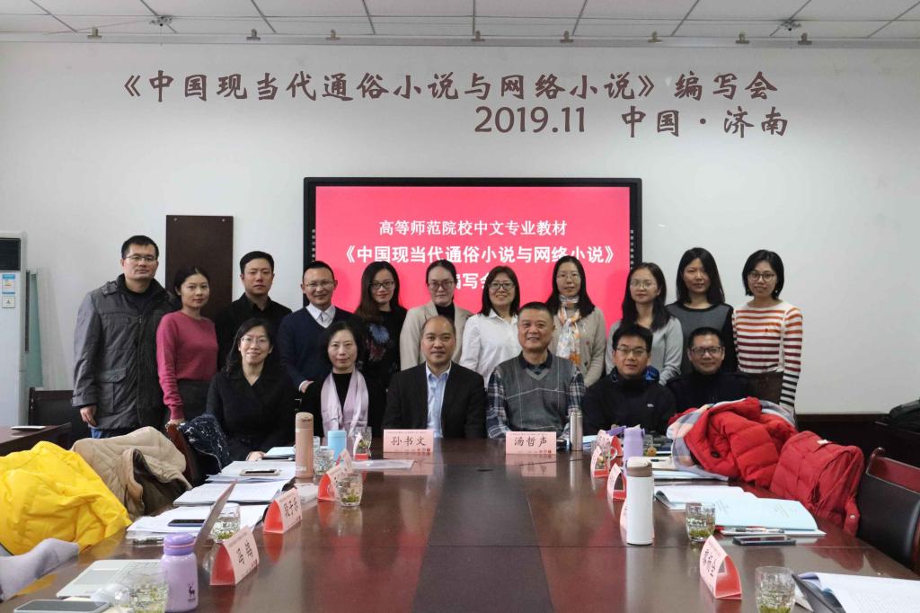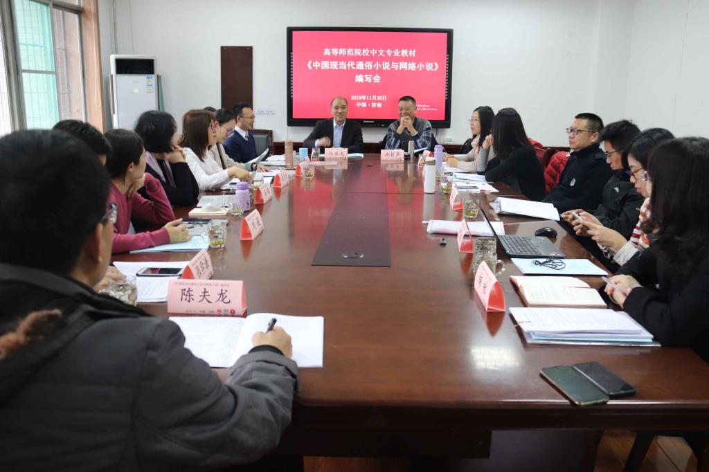 2019年11月30日,高等师范院校中文专业教材《中国现当代通俗小说与网络小说》编写会在我校千佛山校区教学三楼3141会议室成功举办。本次编写会由高等教育出版社主办,360环球在线注册与苏州大学360环球在线注册合办,360环球在线注册中国现当代文学国家重点学科承办。来自高等教育出版社、苏州大学、暨南大学、西南大学、西北大学、扬州大学、山东师范大学等单位近二十位专家学者与会。编写会由高等教育出版社分社长梅咏女士主持,360环球在线注册院长孙书文教授出席会议并致欢迎词。