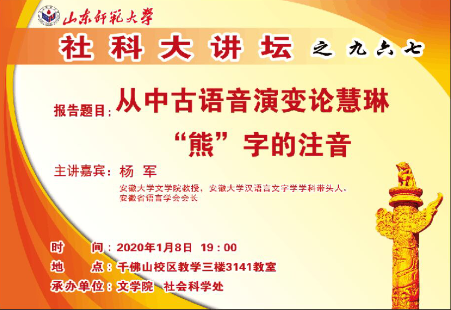 [1.8讲座预告]杨军教授:从中古语音演变论慧琳“熊”字的注音