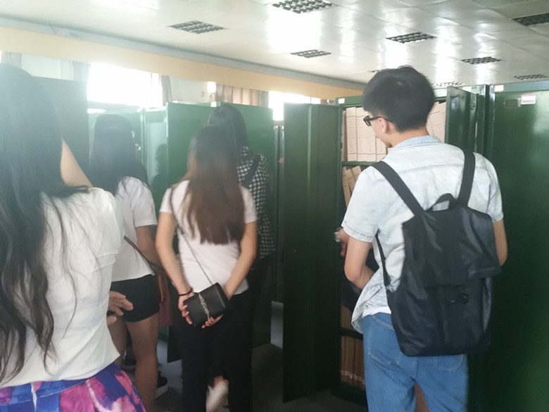 6月2日下午,同学们乘校车抵达千佛山校区后,分成两组依次进入档案馆参观学习。活动伊始,张莹馆员首先为同学们介绍了我校档案馆的历史演变、现行规模,并以实际操作的方式展示了档案的立卷方法、装订方法以及档案电子管理系统的录入方法。同学们仔细翻阅展出的部分光盘、照片、建筑图纸等档案,观察、记录着不同类型档案的保存方式。之后,同学们进入档案馆库房进行实地考察。库房中,档案柜整齐排列,同学们有序地查看库房的编号和排架,对档案保存环境有了一个直观的认识。最后,张莹为同学们详细讲解了档案的提供利用,使同学们获益匪浅。