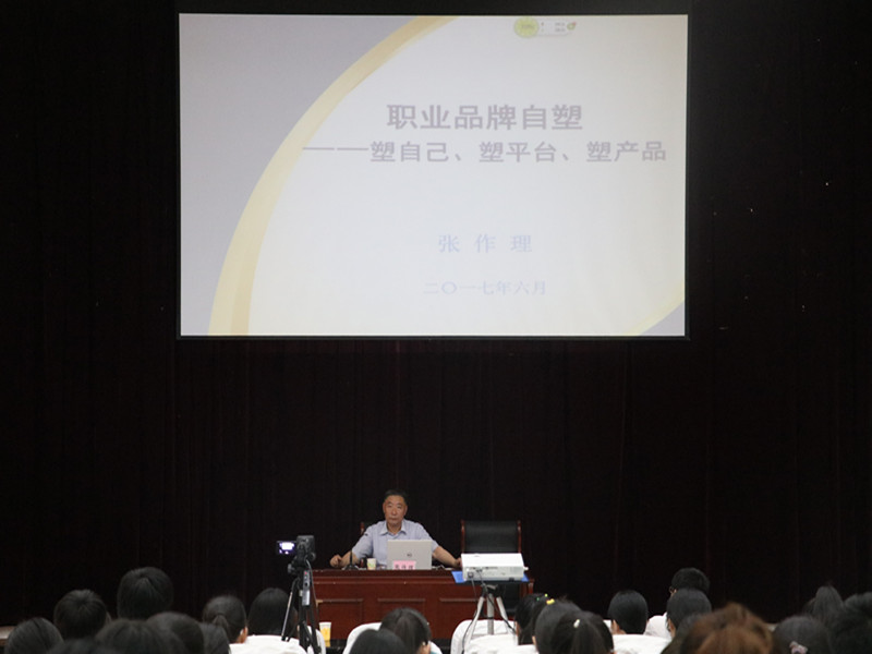 张作理从商多年,对职业品牌的塑造具有自己独特的见解,他将其分为塑自己——培育能量、孕育志向;塑平台——转换能量、放大能量;塑产品——承载价值、彰显品牌三个部分。针对同学们的实际情况,张作理着重解读了何为“塑自己”。他指出,主观的品决定客观的牌,“塑自己”就是培育自己的“根能量”,所谓“根能量”正是精神能、知识能、方法能三个方面的统一。在精神能方面,张作理通过崇拜心、使命感、道德力三个层次对其进行解读。他强调,崇拜是自塑的模特,是人生动力,也是人生目标。同学们要多阅读文学,历史,特别是传记方面的书籍,以形成一个促使自己不断学习、进步的远大目标。读书使人明志,更令人明智,阅读与学习对于培育知识能显得更加不可或缺。张作理从“专”、“哲”、“文”、“史”四方面出发,结合个人工作的经历,向同学们说明了拥有全方面知识的必要性。他表示,所谓人杰,一定既是人文功底厚实,又是专业知识扎实的人。在方法能方面,他以宁夏葡杞酒品牌的创新为例,鼓励同学们观察生活,大胆创新。除此之外,张作理在“塑平台”、“塑产品”两个方面也作出了符合同学们学习生活的阐释,给同学们带来了与众不同的启发。讲座的最后,在贾海宁的提议下,同学们以热烈的掌声再次表达了对张作理先生的欢迎与感激。