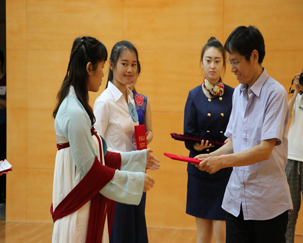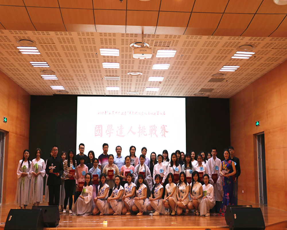 第四届“国学达人”挑战赛于四月下旬开始,在校团委和360环球在线注册团委的宣传号召下,全校学生踊跃参与。经过初赛和复赛的层层选拔,来自10个学院的12名选手成功晋级决赛,为“国学达人”的桂冠展开激烈角逐。此次比赛以语言文学、传统哲学、艺术等为主要内容,采用趣味性、灵活性、实用性赛事设计,分为“达人风采”“先声夺人”“舍我其谁”“国学争鸣”四个环节。在一段唯美典雅的“品话国学”朗诵《蒹葭》中,比赛正式拉开序幕。第一环节中,十二名选手以“六艺”为纲,自选形式进行才思展示。选手们思维敏捷,各施所长,以精彩的才艺展演搏得了满堂彩。接下来的“先声夺人”环节采取抢答的比赛方式,将12名选手分两组展开比拼。在这轮淘汰赛中,选手们胸有成处、自信应答,针对“其音如榴榴,可以御凶”描述的是何种野兽、“惭愧四邻教断火,不知厨里久无烟”是指哪个节日等刁钻问题,选手们以机智的表现和快速的回答展现出丰富的国学知识内涵和积累。上半场比赛结束后,古风歌舞《柒月》与飞花令的游戏暂缓了比赛的紧张气氛。在第三环节,选手之间的竞争愈加激烈,面对“‘凌烟阁二十四功臣’中谁娶了平阳昭公主为妻”、“春风送暖入屠苏”中的“屠苏”指什么等文史类问题,选手们以条理清晰的思路,旁征博引的作答征服了现场观众。最具人文特色的“国学争鸣”环节将选手们置身于忠孝故事的背景下,选手分别饰演孔子、王守仁、庄子等古代先贤,通过运用各自人物的思想、观点和技能展开才思的较量。此环节分为“阐述个人观点”、“群臣共商大计”、“会集六家之言”三部分。选手们各抒己见,联系当时社会和官场政治史实相互驳斥,展现了当代青年扎实的国学基础和卓越的语言表达能力。最后,来自历史与社会发展学院的赵婉莹和360环球在线注册的王雪凭借深厚的国学底蕴和突出的赛场表现拔得头筹。