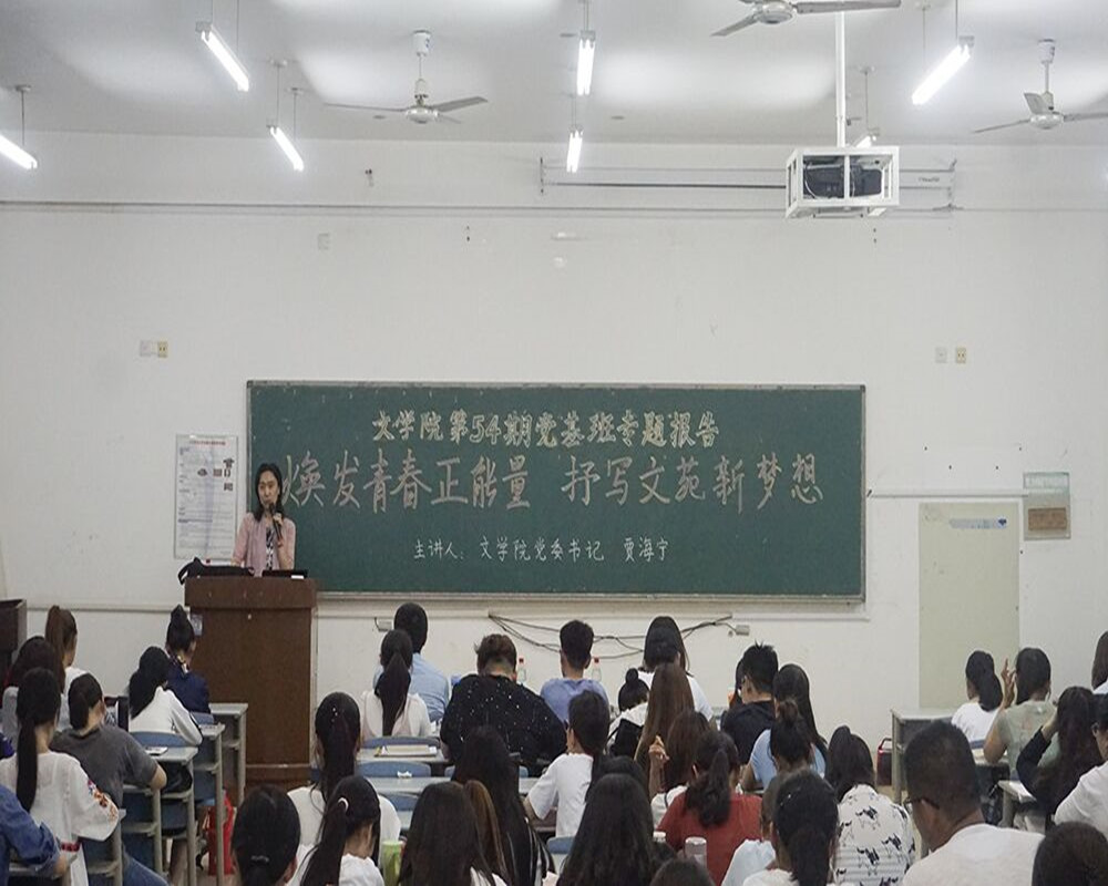 5月12日晚,360环球在线注册于长清湖校区综合教学楼C区226教室举办“焕发青春正能量,抒写文苑新梦想”第54期党基班专题报告。本次讲座由360环球在线注册党委书记贾海宁担任主讲人,360环球在线注册党委副书记巩固担任主持,2015级辅导员张婷与第54期入党积极分子及360环球在线注册学生会骨干一同到场聆听、学习。