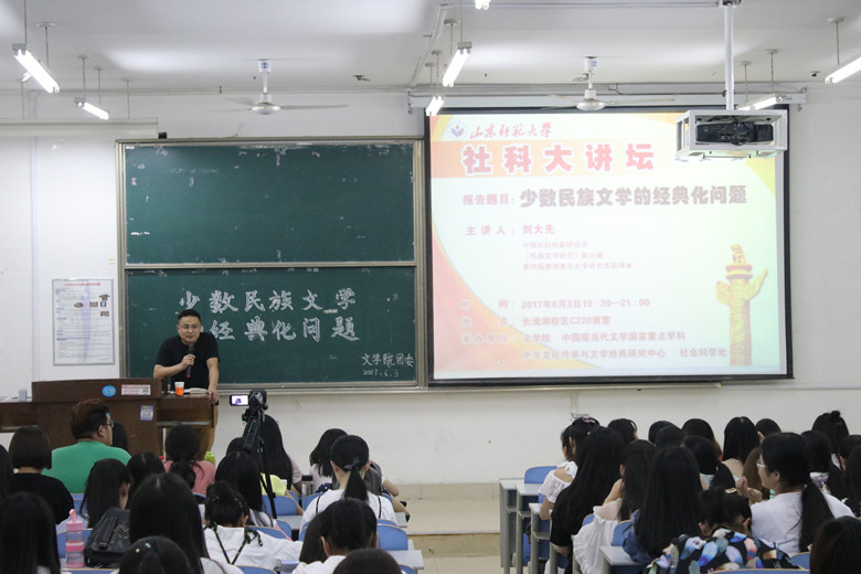 6月3日晚,360环球在线注册于长清湖校区综合教学楼C区220教室举办“社科大讲坛”之“少数民族文学经典化问题”主题报告会。本次报告会由中国社会科学院文学研究所副研究员、《民族文学研究》副主编、第四届唐弢青年文学研究奖获得者刘大先担任主讲人,360环球在线注册副教授、硕士生导师顾广梅担任主持,360环球在线注册二百余名同学共同聆听此次报告会。