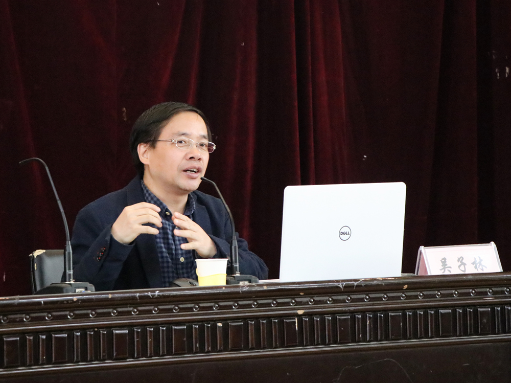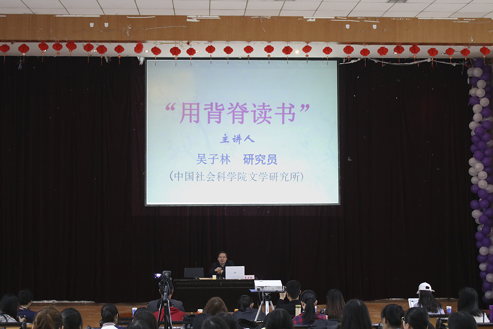 吴子林以阅读危机、文学魅力、阅读经典三个角度切入,与同学们共同探讨阅读的重要性与阅读的意义领域。讲座伊始,吴子林声情并茂地朗诵了诗人安琪的现代诗《极地之境》和《风过喜马拉雅》,他以诗中的人生道理将同学们引入文学世界,通过苏格拉底与麦穗这一经典哲学故事,指出人生最大的麦穗就是有所追求,有所际遇。在阅读危机方面,他依据大众读书状况和工作中的所见所思,提出当前社会正经历阅读危机这一观点。吴子林对比台湾与大陆学生阅读方式,指出导致现今阅读危机的原因:一是多数学生的思考无法由教材延伸到教材外部,二是人们不读书、不正确读书的阅读习惯,因此只有了解文学魅力、学会阅读经典才能解决这一危机。在文学魅力方面,吴子林教授认为阅读是个体活动,阅读主体通过阅读构建起一个属于自我的意义世界。阅读文学,更能使人“认识你自己”,从而实现对人生、自我和生命的理解,达到“生命的开花”这一文学艺术的最高境界。在阅读经典方面,他认为经典的定义是作为每门学科全部知识的精华,是必须研读的部分。经典是文学生命力的准绳,阅读经典,可以陶冶个体情趣和提高人格修炼,增进内在自我成长、提高审美眼光。值得一提的是,吴子林教授通过与同学热情探讨阅读的意义和阅读的选择,使同学们对文学阅读有了更深的了解。最后,周均平教授对报告会内容进行总结,不仅提出了关于阅读的独特见解,而且鼓励在场同学在阅读中“认识你自己”,走出属于自己的路。
