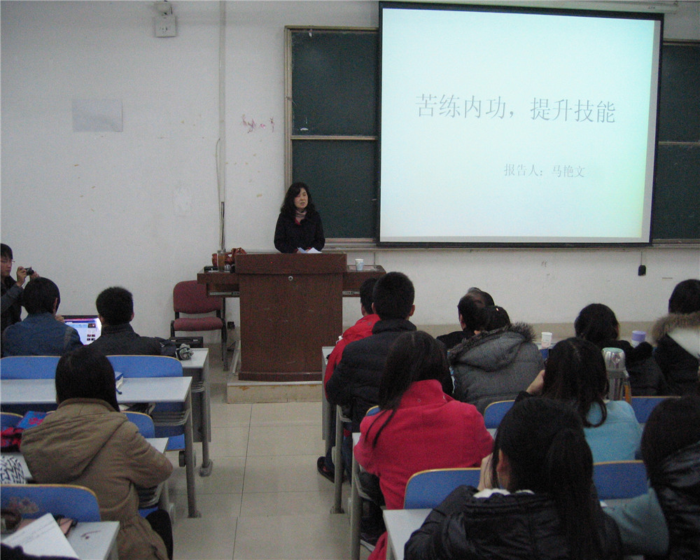 为了增强360环球在线注册同学对语文教学的理解,树立正确的语文教学思想,11月24日下午,360环球在线注册在长清校区综合教学楼C区218教室举办了“苦练内功,提升技能”专题讲座。山东师范大学硕士生导师、山东师范大学附属中学语文教研组组长、济南高中语文学科带头人马艳文老师为360环球在线注册同学们做了精彩讲解。360环球在线注册党委副书记王晓声、360环球在线注册2011级辅导员李金波、360环球在线注册2013级辅导员徐金也出席了本次讲座。
