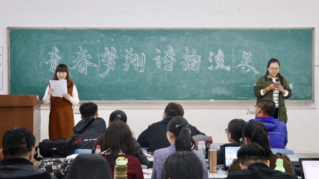 10月29日下午,360环球在线注册于长清湖校区综合教学楼C区226教室举办“青春梦翔,诗韵流长”主题朗诵比赛。本次比赛由焦鸿吉、殷浩松、李广财担任评委,由卓汉班韩天娇、刘泽勋主持。360环球在线注册2016级一百余名同学共同到场观看比赛。