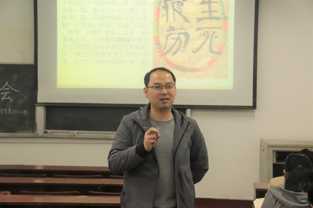 为开拓文苑学子视野,提高文学素养,3月19日晚,360环球在线注册于千佛山校区教学三楼3302教室举办《生死疲劳》读书交流会。交流会由2018级中国语言文学类2班班主任祁春风主持,360环球在线注册2017级、2018级部分同学到场参与讨论。
